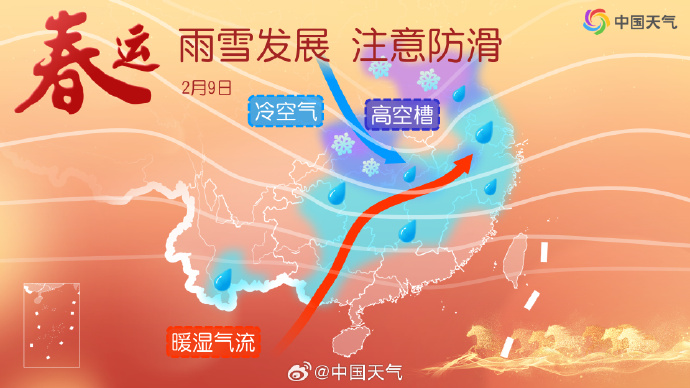 西部、北中部地区会有小雨转雨夹雪或小雪的过程。由于目前正处于春运最高峰,建议过两天要走高速的朋友避开雨雪时段,防范道路结冰带来的交通压力。